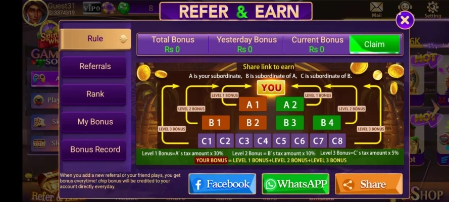 You can also become a game agent and earn commissions based on how many players join via your referral.