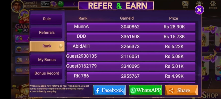 Unlike many other platforms, this app also includes built-in rewards, referral bonuses, and fast deposit/withdrawal methods through JazzCash and EasyPaisa, making it even more user-friendly for Pakistani players.