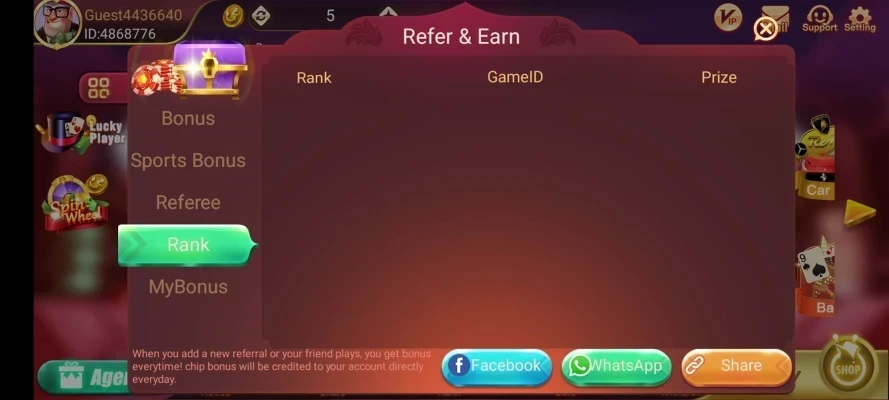 Refer friends to earn commission and extra coins.